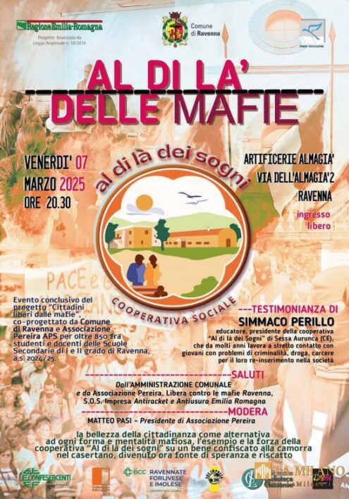 Ravenna contro le mafie 2025: il 7 marzo l’incontro “Al di là delle Mafie” con Simmaco Perillo Venerdì 7 marzo 2025, alle 20.30, alle Artificerie Almagià di Ravenna, si terrà l’evento “Al di là delle Mafie”, nell’ambito della rassegna Ravenna contro le mafie 2025. L’incontro vedrà protagonista Simmaco Perillo, educatore e presidente della cooperativa sociale […]
